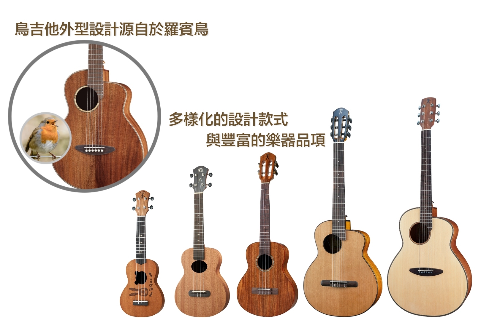 2015開始生產最具代表性的鳥吉他系列,外型設計源自於羅賓鳥,響孔上移設計猶如羅賓鳥的大眼,桶身設計也比照於羅賓鳥寬厚的胸腔,更厚實的桶身加上響孔上移給予吉他更好的共鳴。