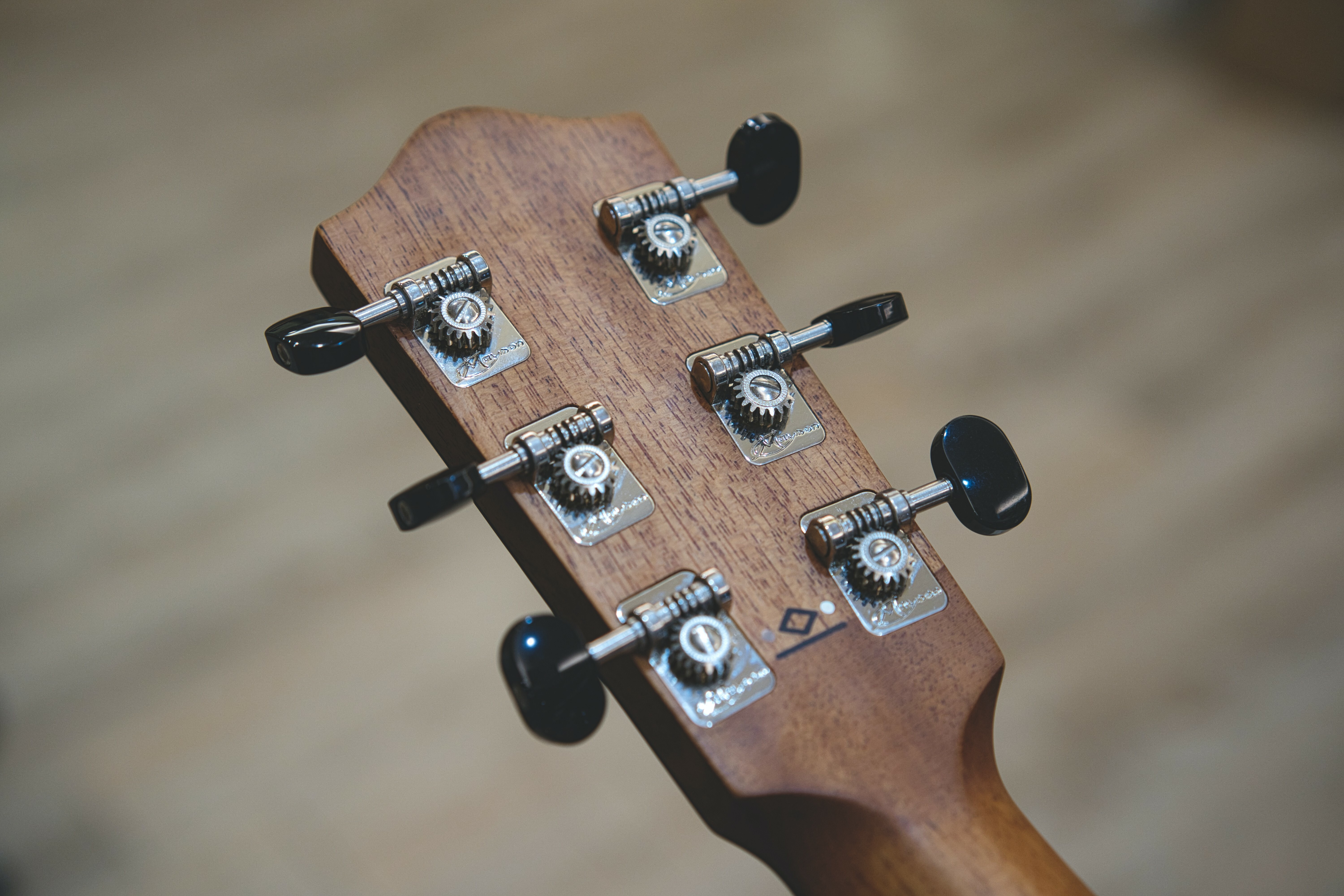 比較起標準款M系列,捨去專利弦鈕系統,使用一般常見油壓弦鈕,包邊條改成黑色壓克力材料。