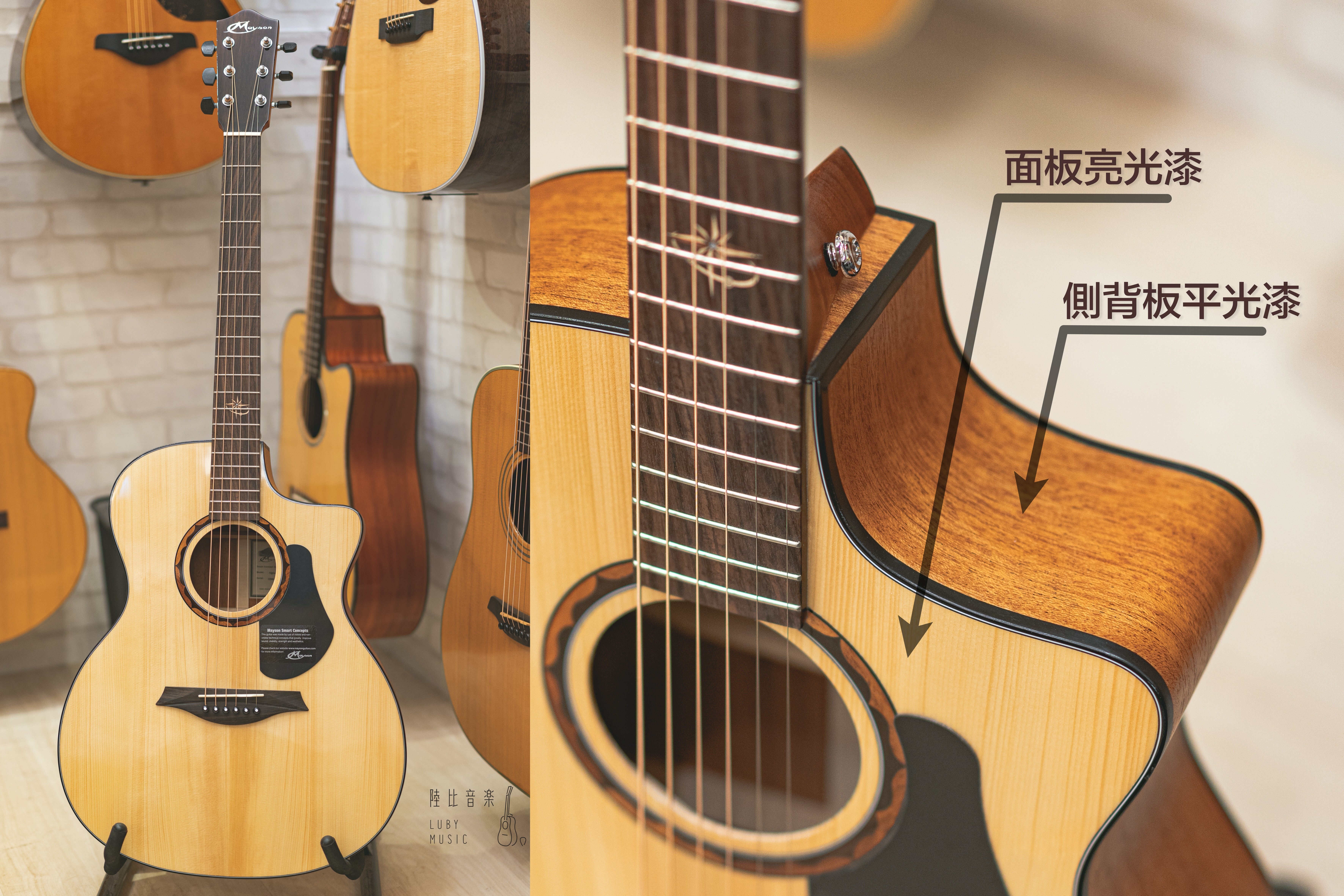 琴身改為雙漆面設計=>面板亮光、側背平光。