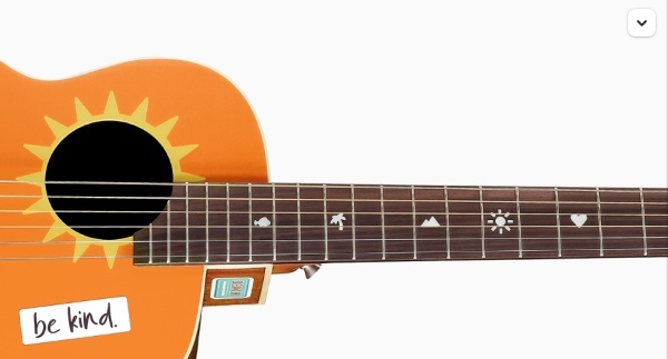 指板點設計,將Music Travel Love的核心精神化作喜愛的元素以「愛心、太陽、山、椰子樹、魚」等造型搭配貝殼材質鑲嵌。20格琴格讓彈奏音域更廣。
