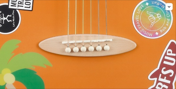 鳥吉他定製的橢圓造型琴橋,使用淺色紋路的楓木,能支撐琴的後段琴弦張力。搭配合成牛骨弦枕,質地堅硬清脆,能有效的傳導琴弦的共鳴。