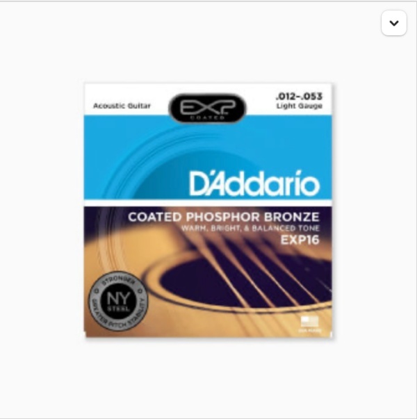 使用美國製弦品牌 D'Addario®的EXP16頂級磷青銅包覆民謠弦,使用六角柱蕊心及EXP防銹塗層技術,使 用壽命長,以音色華麗、溫暖、音量大與舒適的彈奏手感著稱。