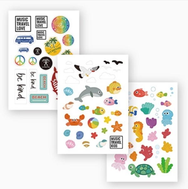 購買 aNueNue x Music Travel Love 系列聯名琴款,皆附贈專屬設計貼紙組合包。防潑水設計,且可多次重複撕貼不傷琴面!「旅行生活」與「海洋生活」兩種不同風格,可裝飾於任何地方,貼上專屬的個性標記,走到哪裡都能展現你的生活風格與創意。