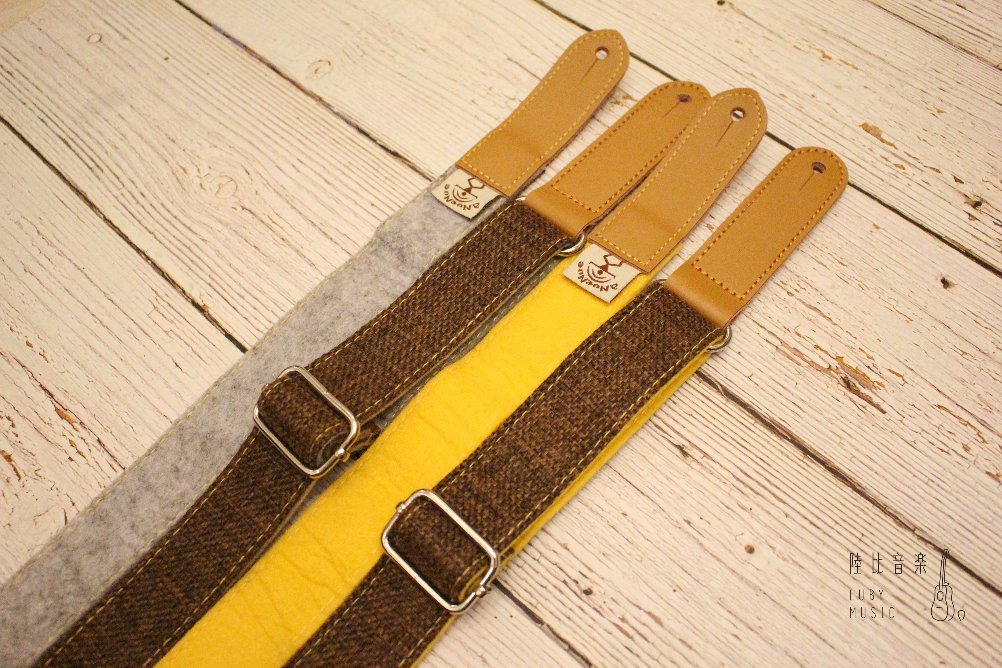 鳥背帶是鳥吉他延伸的系列產品,以「鳥」的概念設計搭配貼近自然的材質 ─ 麻布以及羊毛氈(混羊毛不織布,非純羊毛)作為主要材質,在貼近胸前的地方,設有可放置PICK的鳥巢口袋設計。背帶兩邊使用柔軟的麂皮,讓吉他可以有效的固定,且不會被刮傷。鳥背帶共6色,背帶寬度約3cm,可調整長度 81cm~142cm,厚度約 0.4cm。 外面三種顏色麻布搭配,外側縫上放PICK的鳥巢口袋配合內層有六色混羊毛不織布,aNueNue織標縫內側,背帶縫上麂皮扣環,共有六種搭配:桔紅色羊毛氈搭配米色麻布、湖藍色羊毛氈搭配米色麻布、亮橙色羊毛氈搭配淺棕色麻布、墨綠色羊毛氈搭配淺棕色麻布、杏黃色羊毛氈搭配咖啡色麻布、銀灰色羊毛氈搭配咖啡色麻布! 羊毛纖維若不小心沾染髒污時,請盡快以冷水輕柔搓柔清洗,可擇標有不含漂白劑的中性洗劑清洗,請勿使用溫、熱水或漂白水等清潔劑或是刷子、洗衣機強刷清洗,以免纖維品質受損以致變形,清洗完成後可在自然晾乾後使用,勿高溫烘乾。
