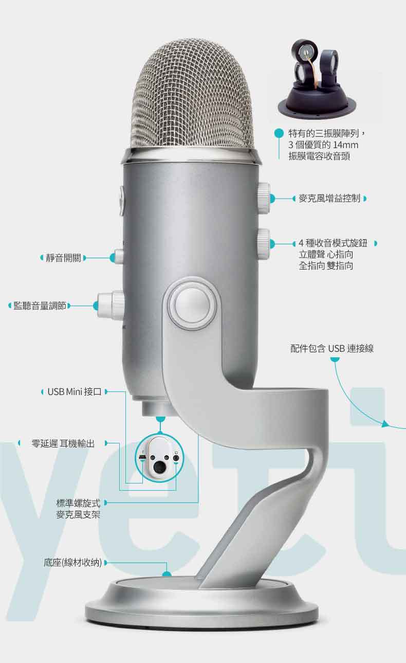 Blue - Yeti(USB麥克風)人聲麥克風 Podcast 宅錄必備 錄音麥克風
