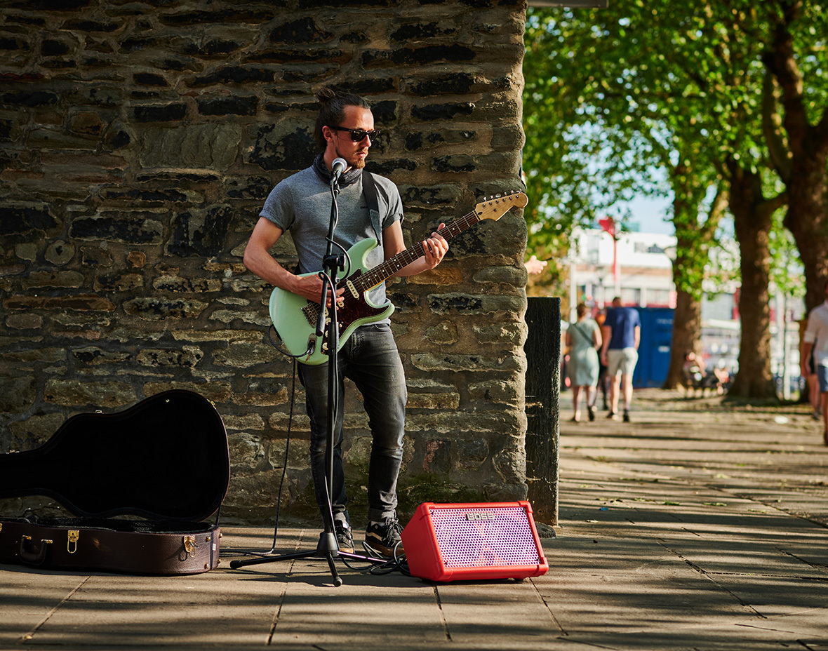 CUBE Street II 有兩個多功能輸入通道,支持所有類型的音樂家和表演者。麥克風/樂器通道具有一個組合插孔,可用於 XLR 平衡麥克風或鍵盤或 Roland 的 Aerophone 等樂器。配備標準 ¼ 英寸插孔的吉他/麥克風通道為吉他手提供了即插即用的聲音,具有七種原聲和電放大器類型,以及線路電平樂器或非平衡麥克風的設置。如果您需要擴大聲音範圍,可以使用專用輸出連接到家庭 PA 或其他 CUBE Street II。