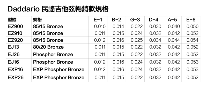D'addario為樂器弦大廠,EXP系列為品牌木吉他弦最高等級