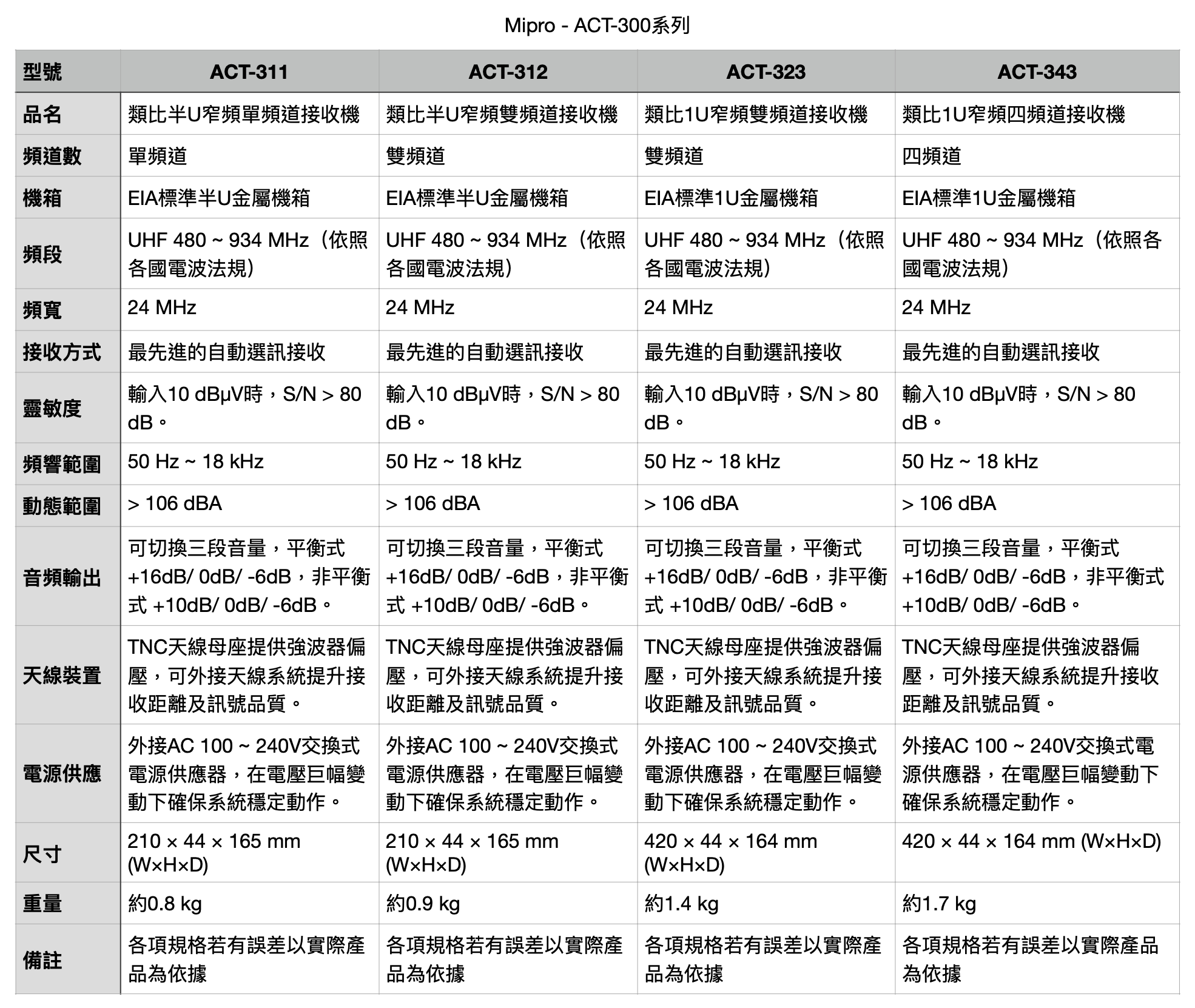 本系列接收機維持搭配ACT-32H手握式無線麥克風,是熱門機種的銷售冠軍。