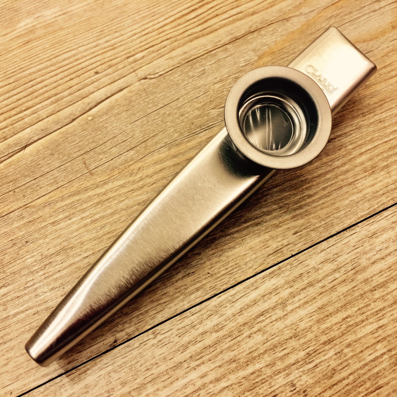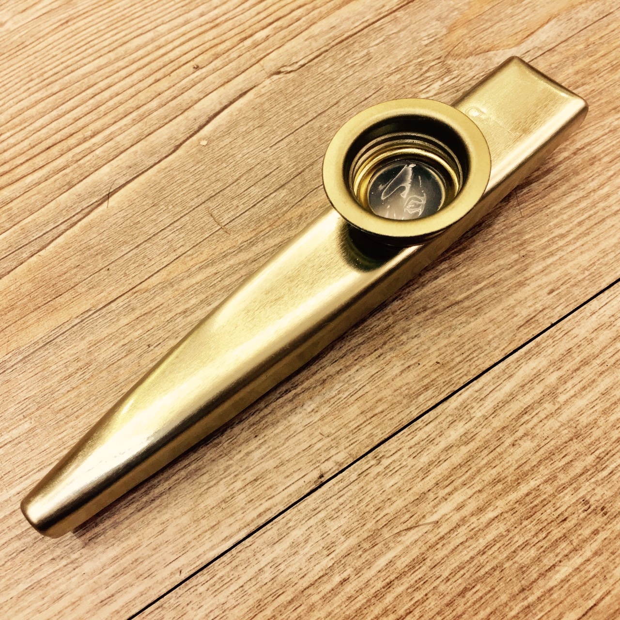 英國製造的Original卡祖笛(Kazoo) , 一種演奏時依靠自身的膜片和共鳴管將人類哼唱聲音放大,發出嘶啞音色的管樂器,屬於膜鳴樂器。演奏卡祖笛時,演奏者不是對著它吹奏,而是哼唱。哼唱產生的振盪氣壓帶動卡祖笛膜片震動,由此產生的聲音在音調與音量上都隨哼唱不同有所不同.